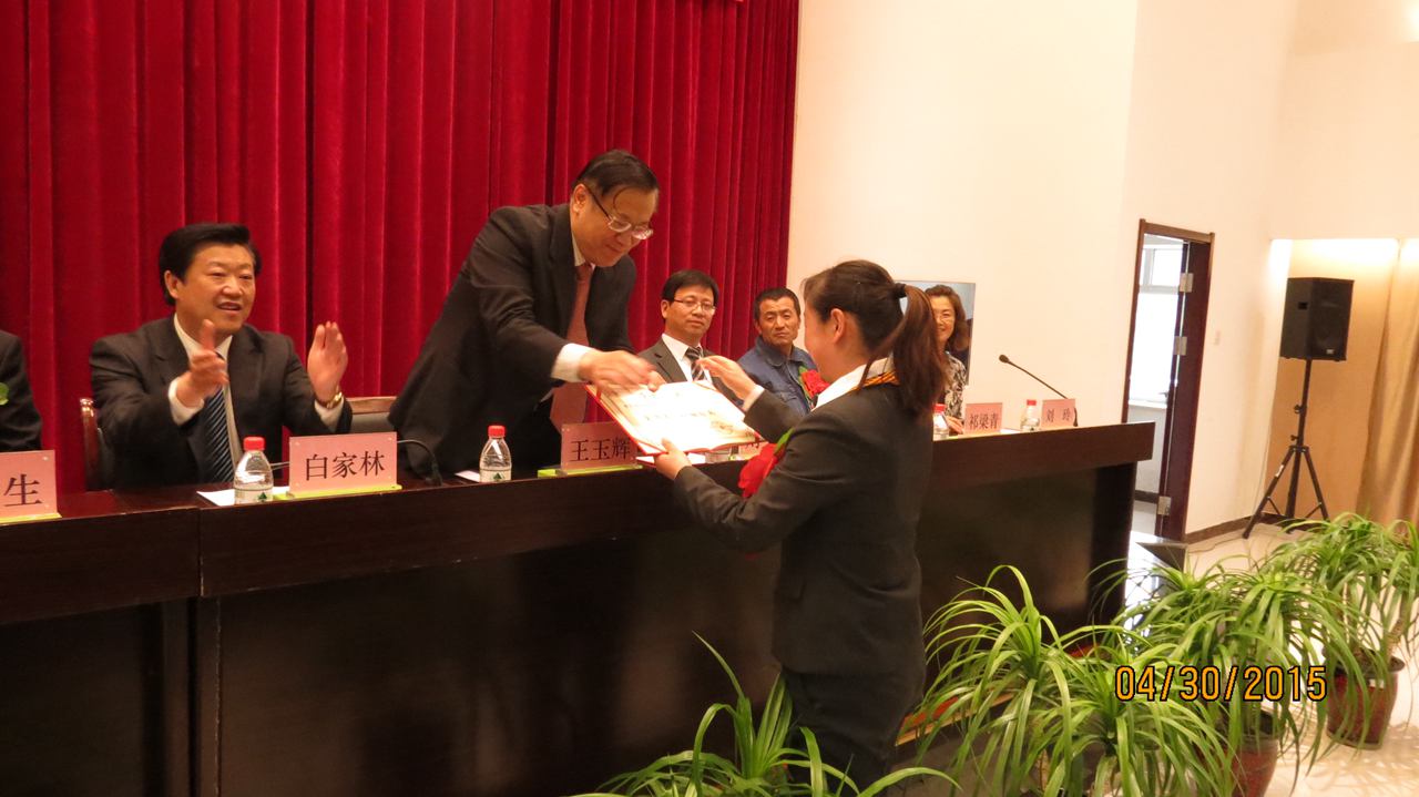 集團(tuán)總經(jīng)理王玉輝首先為榮獲"全國(guó)五一巾幗標(biāo)兵"榮譽(yù)稱號(hào)的青海物產(chǎn)汽車貿(mào)易有限公司銷售總監(jiān)劉少俠頒發(fā)了榮譽(yù)證書。