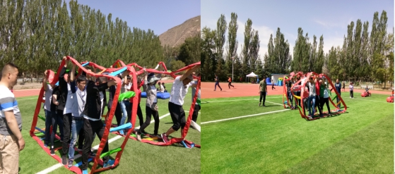 通過系列游戲?qū)胪卣估砟?,同時建立團(tuán)隊、選舉隊長、編隊歌、取隊名、定隊訓(xùn)、繪隊旗、做團(tuán)隊雕塑,做文化展示。隊員在精神整裝和團(tuán)隊建立時充滿信心和激情的表現(xiàn),體現(xiàn)出青海物產(chǎn)汽貿(mào)團(tuán)隊已整裝待發(fā)、破冰起航。
