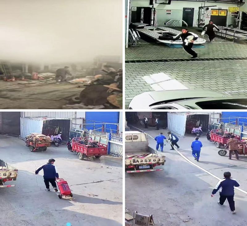 1月4日下午,一場突如其來的火情打破了午后的平靜。汽貿(mào)公司相鄰廢品回收站內(nèi)堆積的紙制品、塑料等易燃物被引燃,瞬間濃煙四起,火勢蔓延極快,現(xiàn)場形勢十分危急。緊要關(guān)頭,汽貿(mào)公司職工迅速行動,第一時間奔赴火災現(xiàn)場。撲救中,大家迅速依據(jù)火情制定了應急預案,之后分組開展救援。一組人員迅速將七八根消防水管連接妥當,接引水源沖向火場;二組人員攜大型滅火器,冒著濃煙,義無反顧的壓制火勢;剩余人員快速疏散周邊群眾,并仔細排查現(xiàn)場滯留人員。